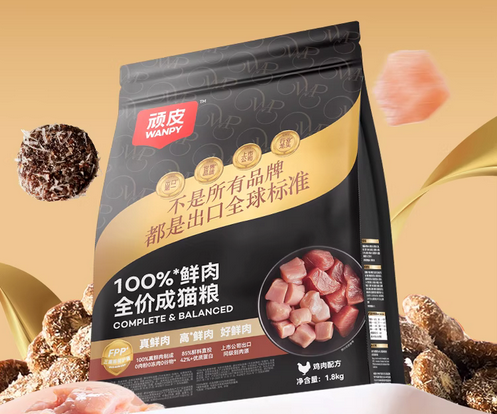 2025什么猫粮品牌最好?顽皮是国产老牌猫粮,凭借多年的品牌运营和配方调试,在国产猫粮市场中有一定的知名度,产品主要面向中高端市场。这款小金盾猫粮号称100%鲜肉投料,主要用的是鲜鸡肉和鲜鸭肉,加入了少量的内脏和油脂,原料还添加了豌豆来补充淀粉。为了提高适口性,猫粮还额外用了6%的冻干绒原料,吸引猫咪进食。