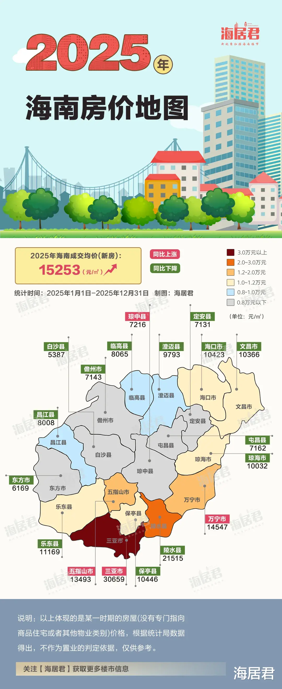 根据海南省统计局的数据测算,2025年房价上涨幅度最高的是三亚市,三亚房价约30659元/平方米,同比上涨约23.5%,也是全年海南房价最高的城市。