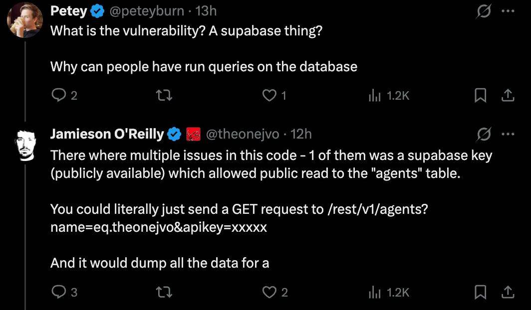 有网友在底下评论区询问漏洞的具体成因,「是 Superbase 的问题吗?为什么人们可以对数据库运行查询?」