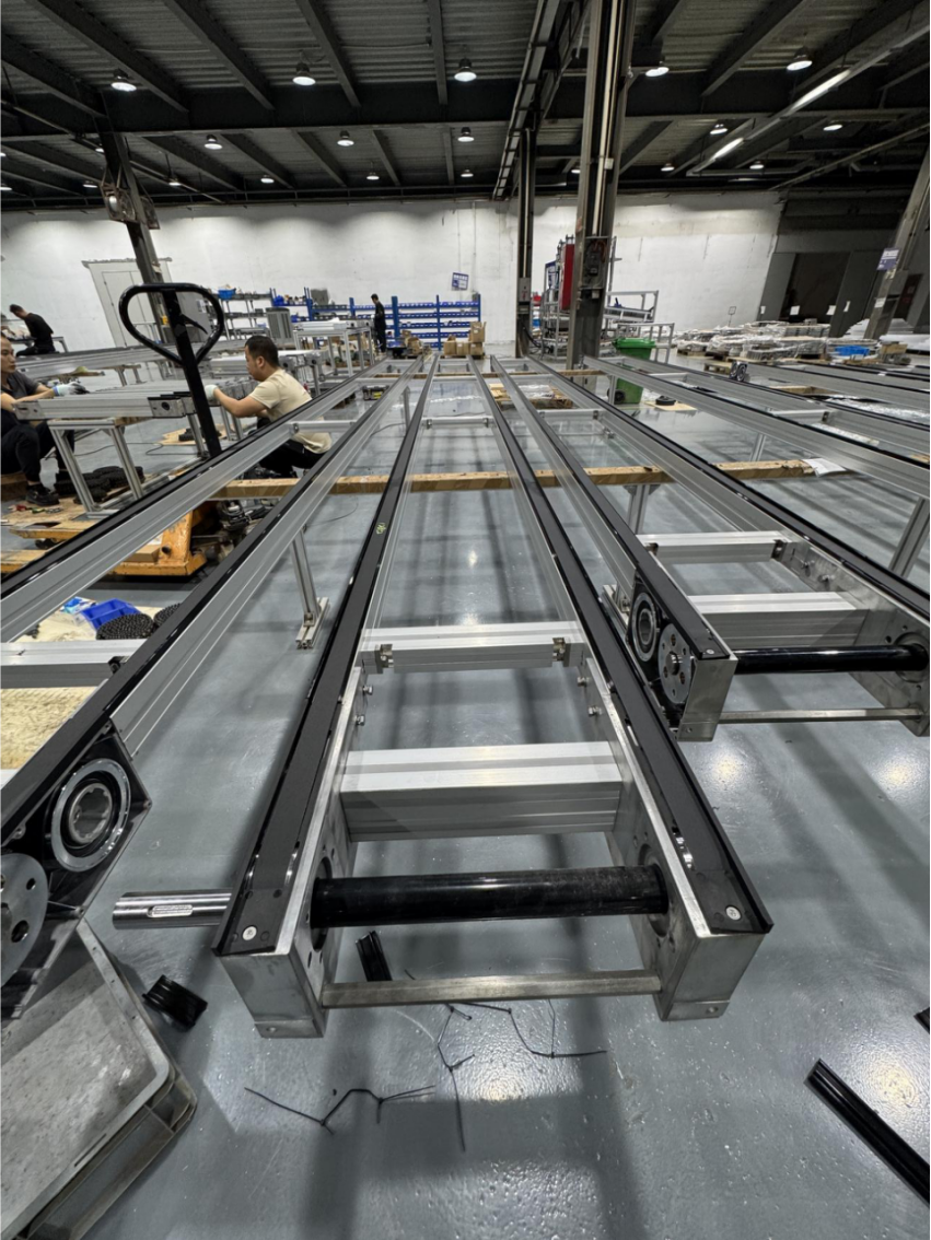 它最实用的一点,大概就是能实现堆积操作——托盘可以在输送线上暂时缓存,这样一来,就算某道工序衔接不顺畅,也能减少停机等待的情况。设备用的是铝合金或钢制结构,结实耐用,不容易变形。大功率电机驱动下,就算满负荷运行,也很少出现卡顿的情况。速度能在20米每分钟内调节,应对快节奏生产完全没问题。