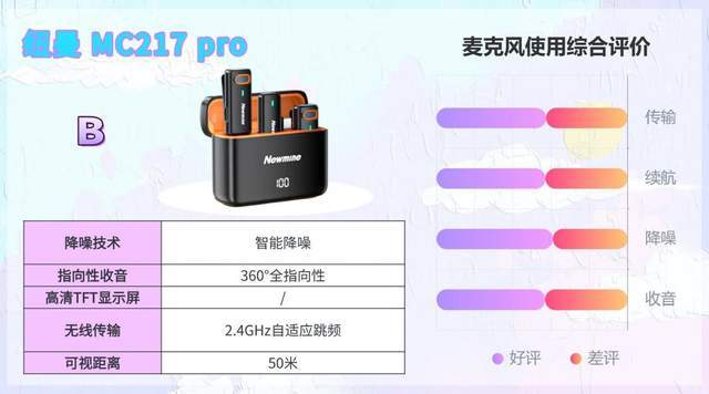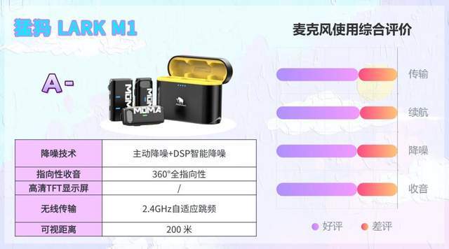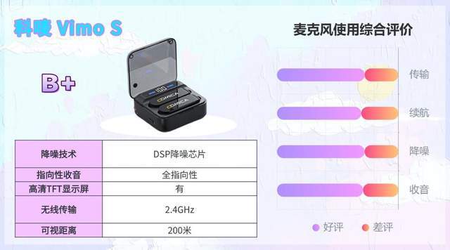 综合实力评价:兼容手机、相机等多设备,连接简单,即插即用,设备切换灵活。支持录音备份功能,避免素材丢失。单发射⑦续航8小时,搭配充电盒可复充2次。