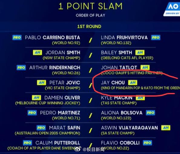 #周杰伦惨遭一球淘汰#[笑cry]【周杰伦“一球制胜”一秒失利,动还没动就被ACE】#周杰伦动还没动就被ACE#1月14日下午,2026澳网“一球制胜”活动中,跨界的著名歌手周杰伦没能闯过第一轮。