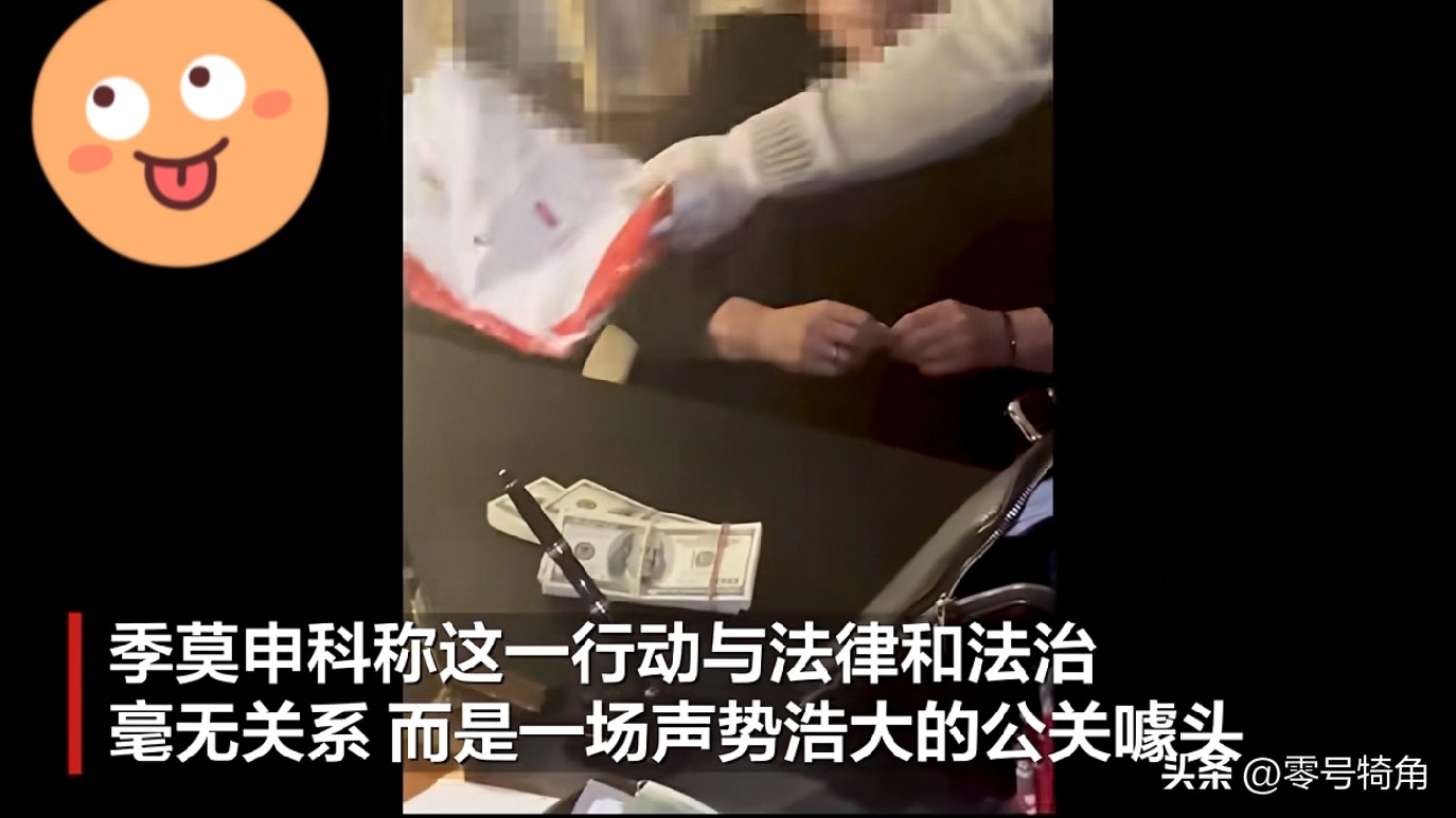 物证方面,执法人员当着面把旅行袋打开,将成捆的百元美钞进行展示,整个过程都录像了,之后还在社交媒体上公布了 。