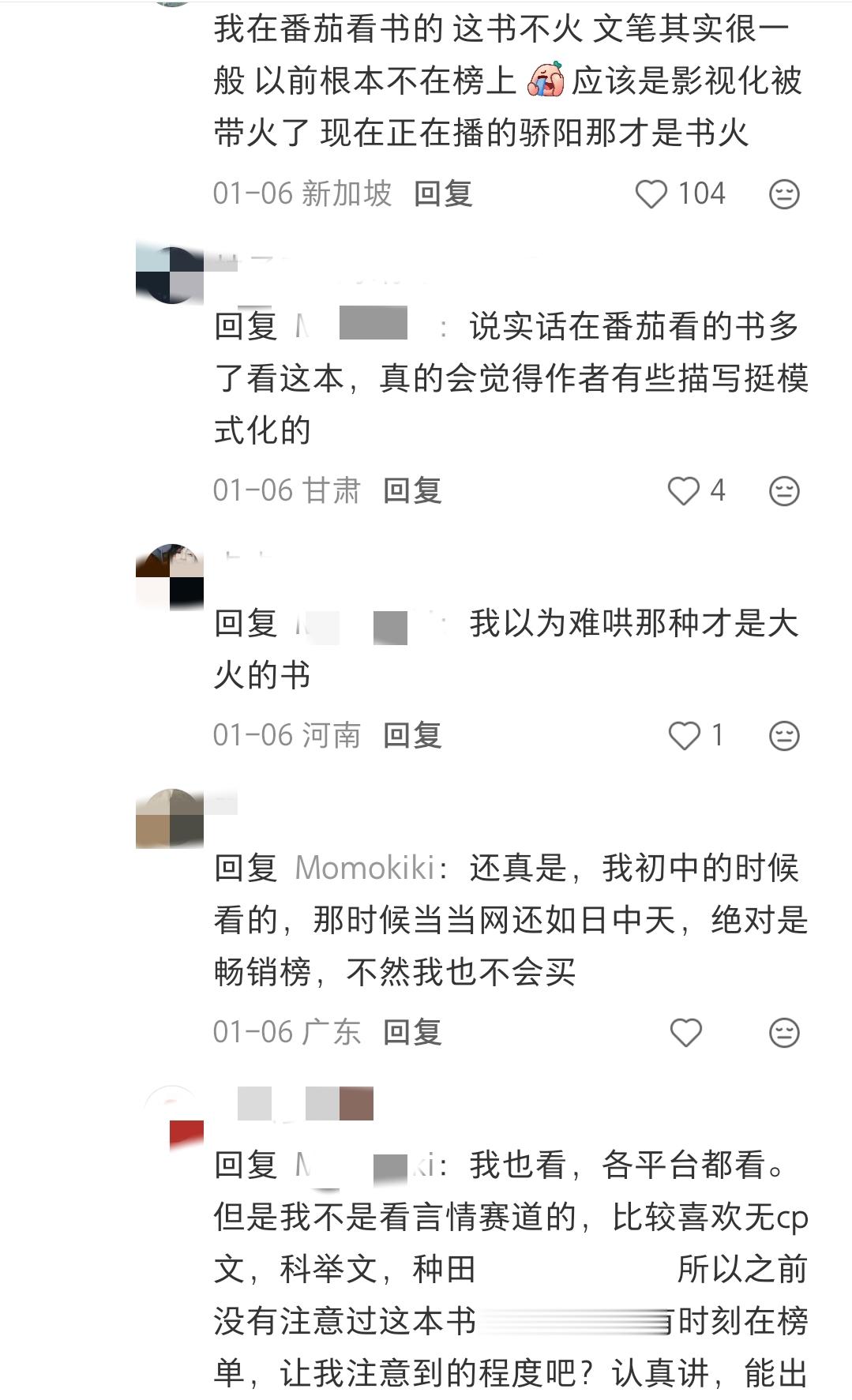 而且那时候身边也几乎没人看,各个平台提的人也好少,在番茄上它也并不算特别大的一个IP,名气更是比不上《将门毒后》《十日终焉》《难哄》《骄阳似我》等!