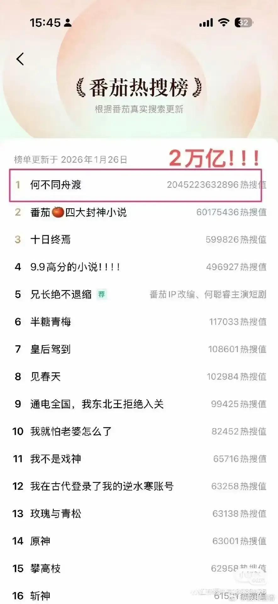1月3日至2月15日,定妆日至今番茄热搜TOP1,42天!峰值近3万亿!
