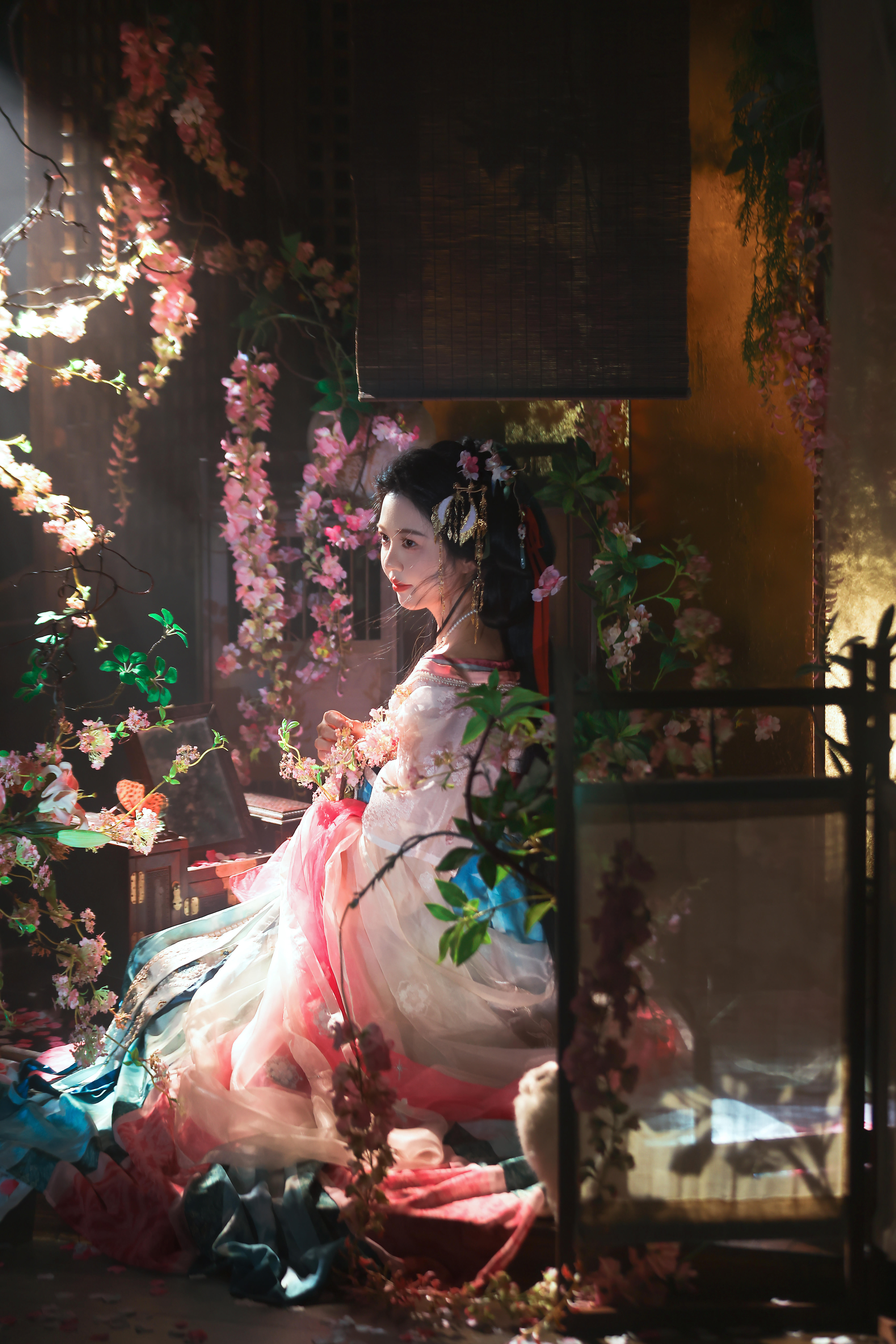 人物的动作与情绪是性格化拍摄的关键,需引导模特进入角色的性格状态,而非单纯摆拍。对于“活泼灵动”的性格,可设计扑蝶、提裙奔跑、拈花笑等动态动作,捕捉自然的肢体反应;对于“沉稳内敛”的性格,则以静坐、抚琴、远眺等静态动作为主,通过细微的面部表情传递情绪,如轻蹙的眉头、微垂的眼帘。