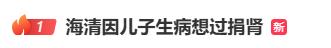 2月9日,“海清因儿子生病想过捐肾”的词条,冲上文娱榜热搜第一。