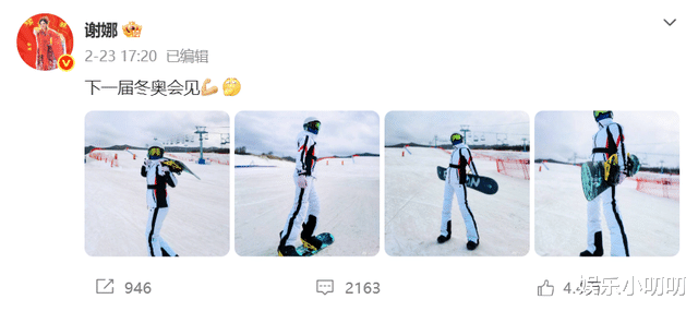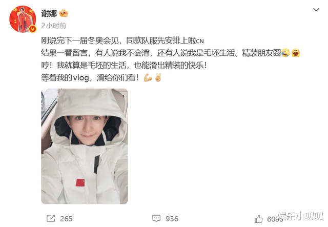 视频一出,不少网友也是纷纷调侃谢娜“毛坯生活,精装的朋友圈”,原来艺人也和普通人一样呀,这朋友圈都是经过精美包装后的产物呀。谢娜坐不住了,2月27日,谢娜在个人社交平台回应此事,还晒出身穿冬奥会同款队服。并不服气的表示,就算是毛坯的生活,也能滑出精装的快乐!并励志要晒出vlog,要滑给大家看,要向大家证明自己会滑。不得不说这做法很是娜姐呢,太可爱了!