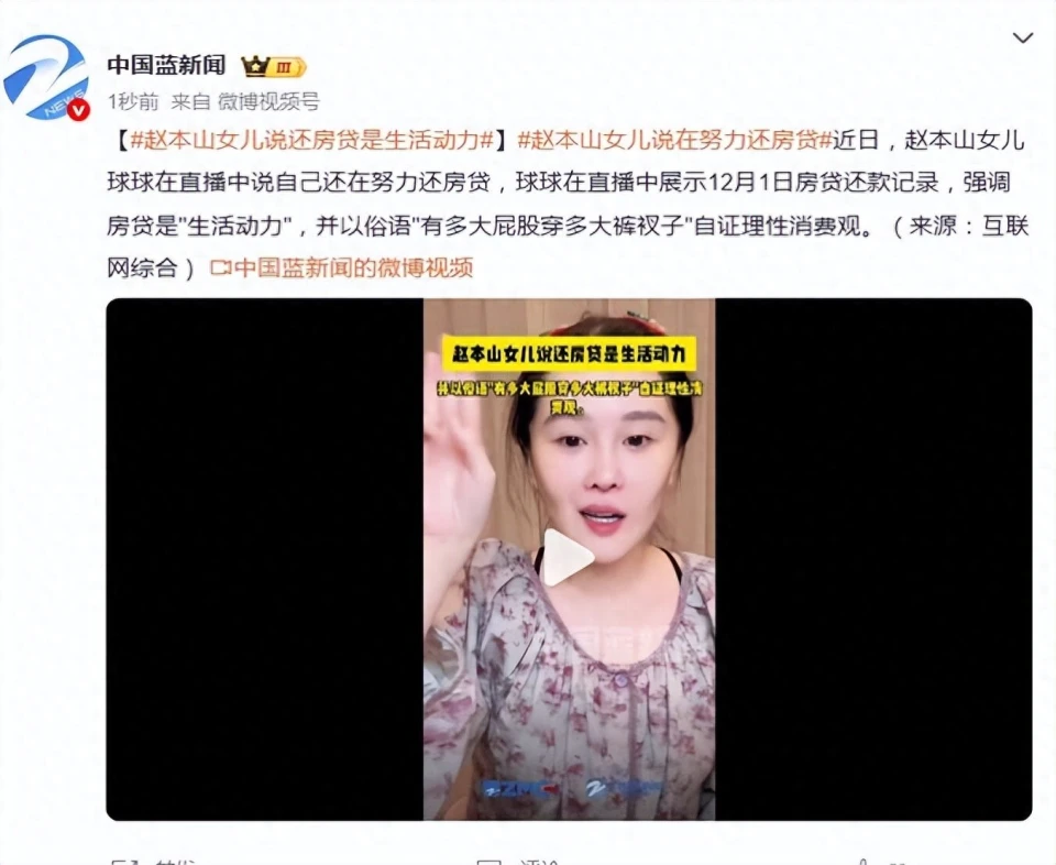 赵本山早说过“我的就是孩子的”,他的传媒帝国光沈阳基地就值数十亿。球球自己也承认,直播起步全靠父亲的人脉资源,即便带货数据下滑,也有家族产业兜底不会断供。普通人断供要收房,她的“还贷压力”更像“自律打卡”,根本不是一个次元的焦虑。