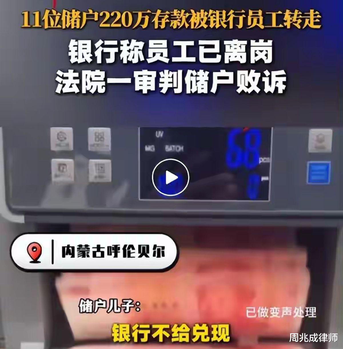 柜台存钱也能丢?220万被银行员工转走,银行拒赔还胜诉?大家好,我是周兆成。