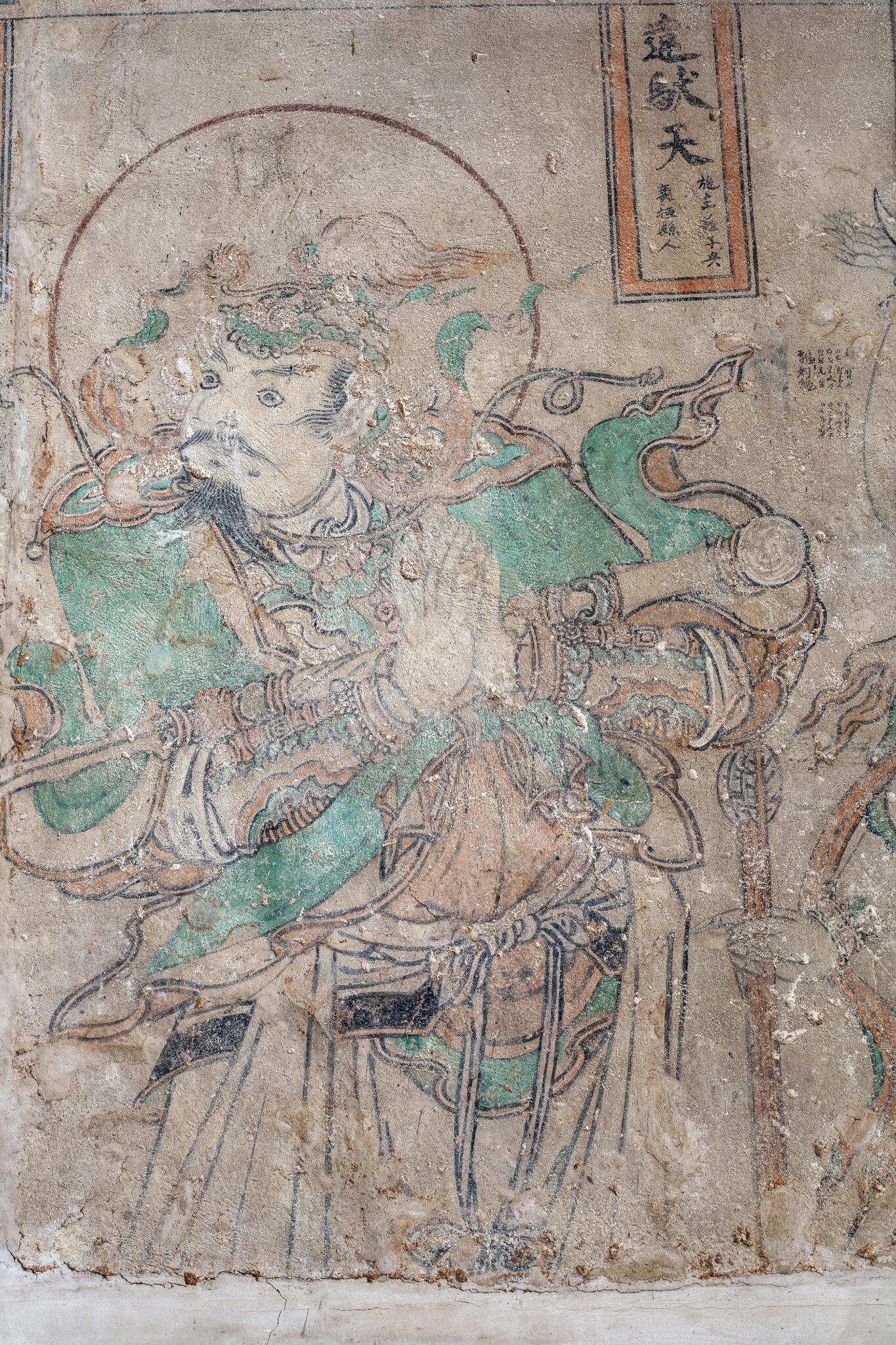 殿内的壁画是另一个惊喜。北壁上,元代绘制的“二十四诸天”栩栩如生,虽然部分画面已经斑驳,色彩也有些暗淡,但人物的神态依旧鲜活——有的诸天手持法器,眼神威严;有的身披璎珞,姿态雍容;还有的面露慈悲,仿佛能看透世间万物。凑近了看,能发现画师的笔触格外细腻,衣纹的褶皱、法器的纹路,甚至诸天脸上的胡须,都刻画得入木三分。老人说,这些壁画能保存下来,全靠佛头寺地处偏远,躲过了历朝历代的战乱与修缮大改。元代的画师大概不会想到,自己笔下的诸天,会在几百年后,成为连接宋、元两代历史的纽带。