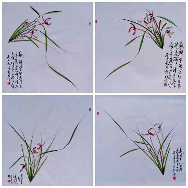 - 九叶分(九笔兰)技法:以九笔勾勒一株完整兰草,看似极简却变化无穷,通过精妙的笔墨组合,创作出姿态万千的兰花佳作,极大拓宽了兰花绘画的表现维度。