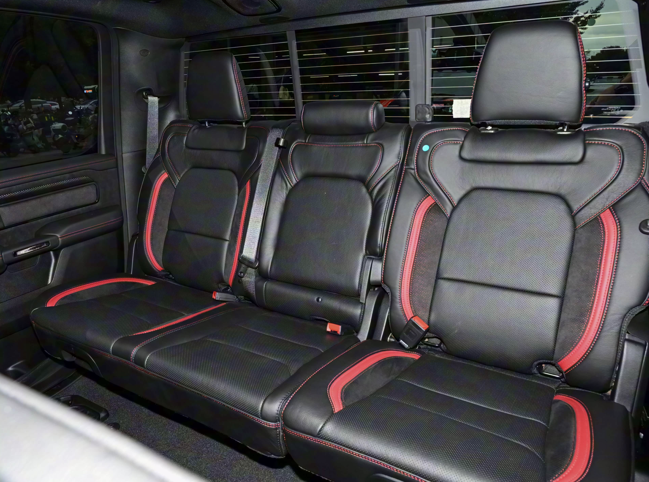 RAM皮卡座舱变得更加低调奢华,与粗犷的外观形成了截然的反差。采用了黑红双色搭配,它车内选用了高级布料、皮革及绒面革的铺陈,再配上填充厚实的沙发座椅,前排还加宽了坐垫和靠背的侧翼,带来了美式豪华SUV的慵懒气息。随处可见的手工刺绣的RAM字样,也更有格调。该车配备了12英寸竖屏显示器、8英寸半液晶仪表,科技感与时俱进,真的也带来了豪华SUV的尊享感受。