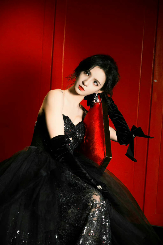 妆容精致,红唇如火,与黑色礼服形成鲜明对比,更添几分妩媚与霸气。她的美,不仅仅在于外表,更在于那份由内而外散发出的自信与从容,让人不得不为之倾倒!