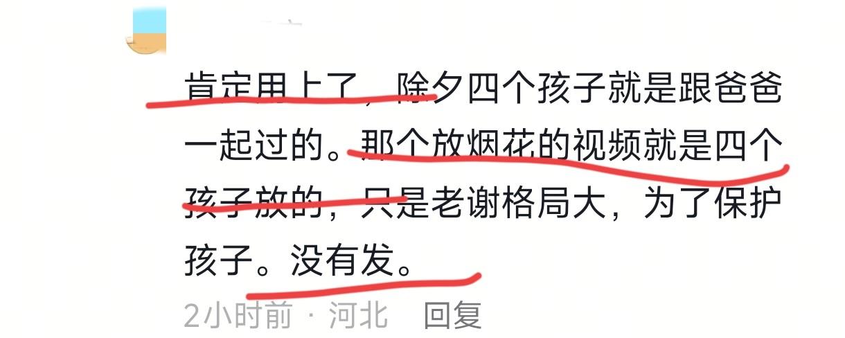 春节过完了,谢岳没发一个和儿子在一起的视频,至于他有没有带谢浩男祭祖有没有和儿子在一块儿吃年夜饭,外人不知道。应该都做了,但是不方便发布出来。