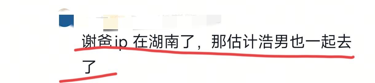有多个人在湖南长沙看到了谢浩男,而谢浩男的爸爸的账号今天也显示在湖南,看来,是父子同乘一辆车离开了四川回深了!