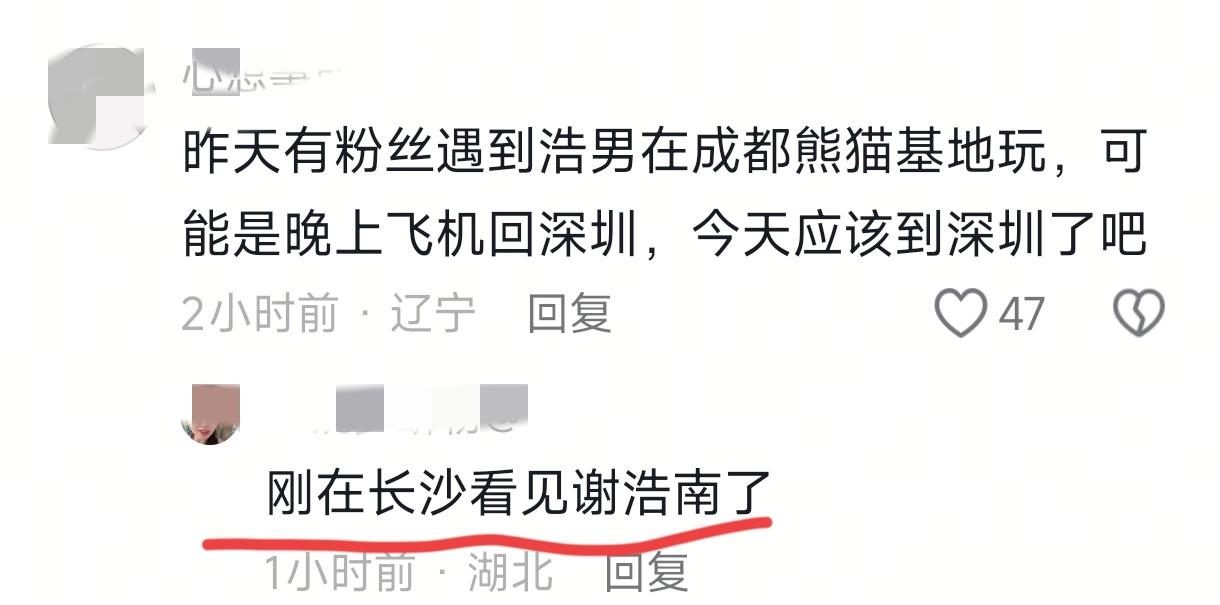 还有一位粉丝也说在长沙看到了谢浩男。