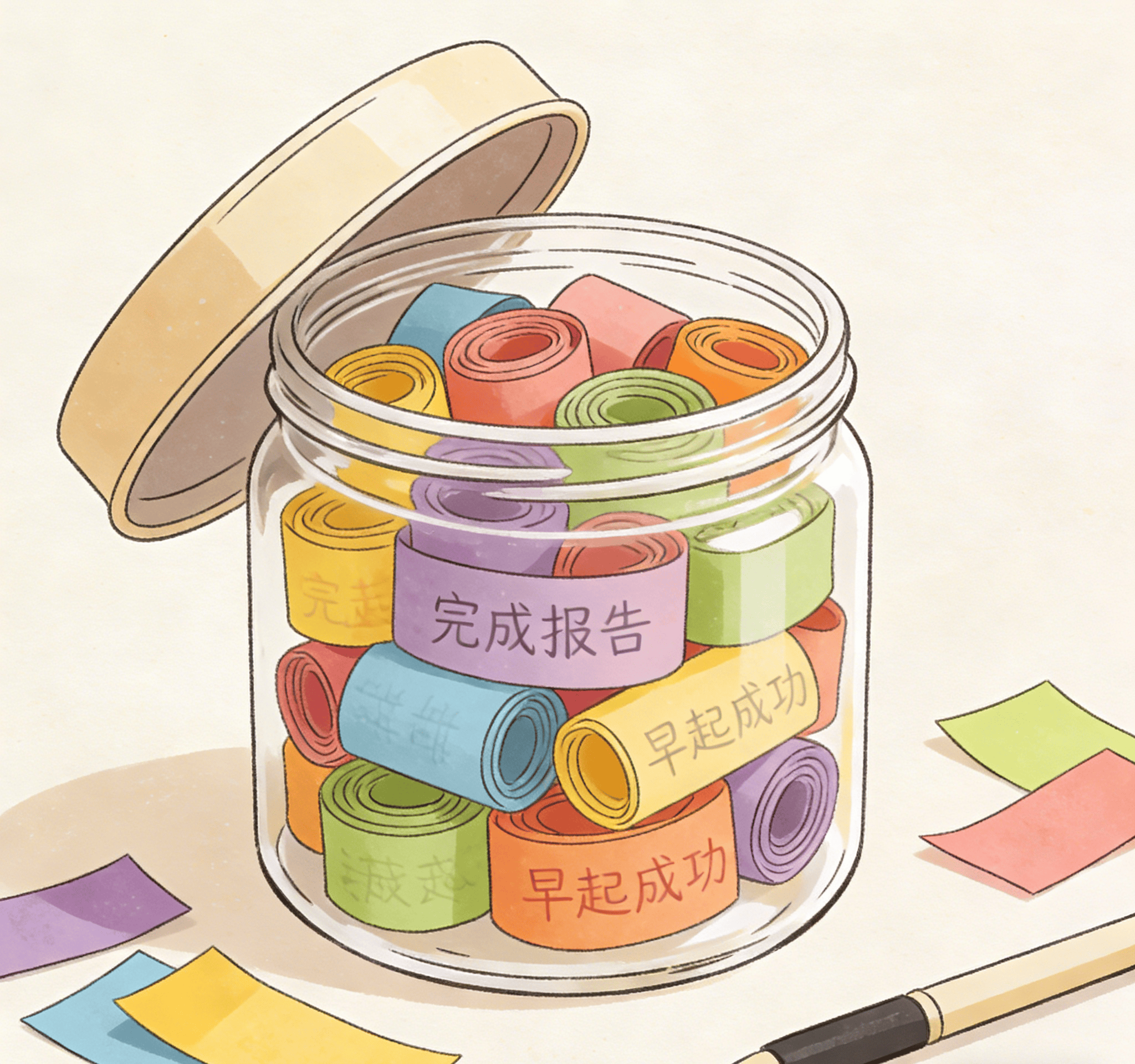 准备一个透明罐子,每天放入记录小成就的纸条: