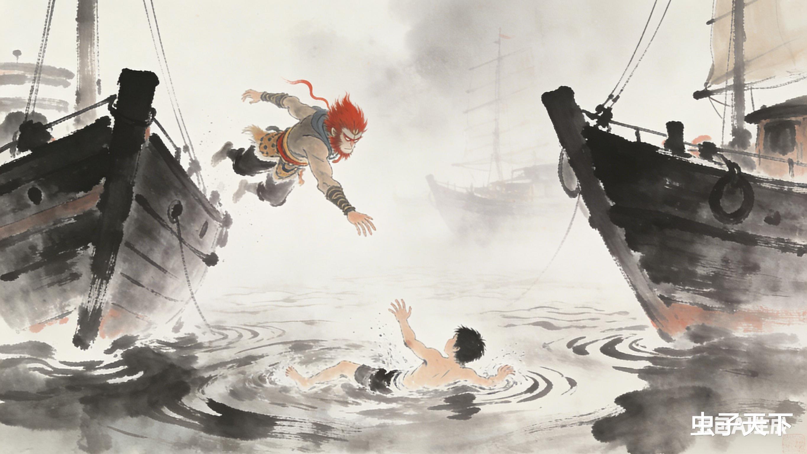 雾太浓,我们只听到水声和喊声。约莫一刻钟后,雾渐渐散去,只见沙悟净将那人推上船,自己却往下沉。