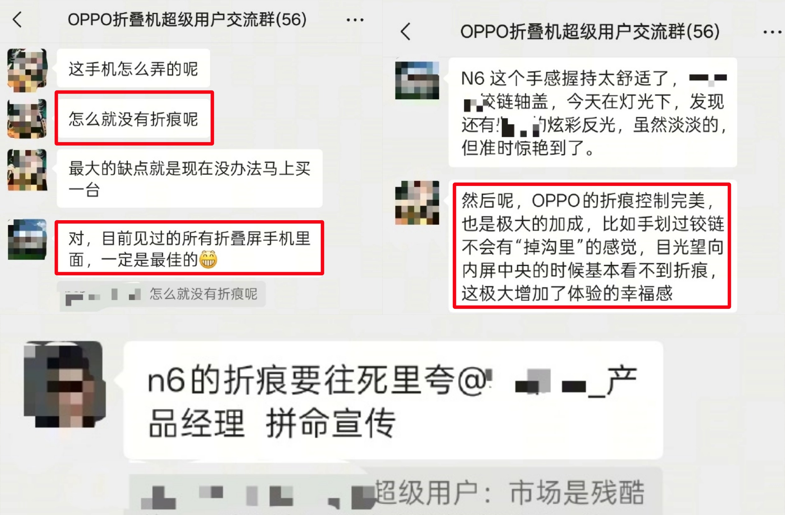 虽然对Find N5的折痕控制已经很满意了,但还是羡慕提前用上Find N6的内测用户!从周意保放出的反馈来看,它们视角下的Find N6做到了“没有折痕”,屏幕观感是所有折叠屏手机里最佳的存在。而且触感方面,手划过铰链还不会有“掉沟里"的感觉...只能说“无痕钛合金铰链+自修复记忆玻璃”这一套下来确实给力。