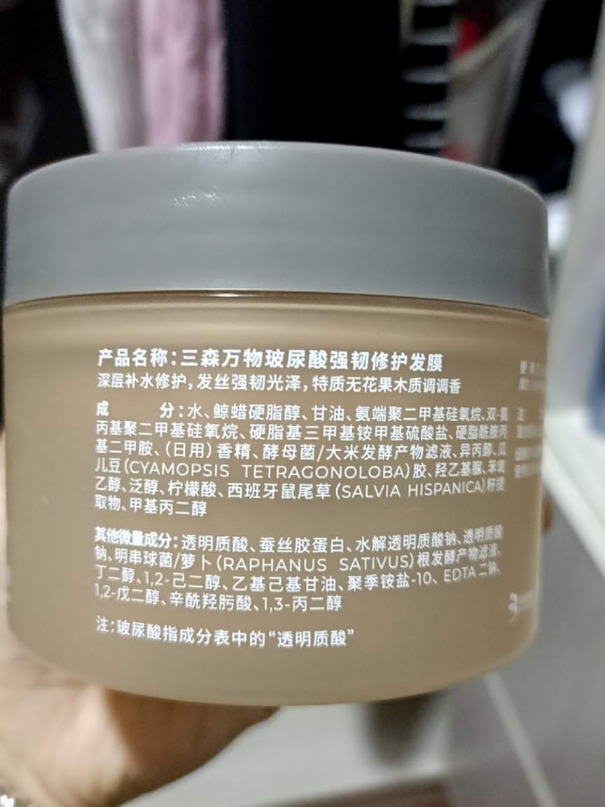 这款发膜的香味说实话挺让人意外的,一开始以为就是那种甜腻的花果调,结果上头后慢慢散出来一丝雪松和琥珀的底子,通勤地铁里邻座还问我是不是换了香水。挺有意思的是它留香的方式,不是一股脑全放出来,倒像是头发在慢慢“呼吸”出味道,像晒过太阳的床单角落藏着一缕淡香。不过洗完第二天基本就闻不到了,想要持续得天天用。后来发现它的香精是做了微胶囊包裹的,摩擦时才会释放,难怪早上梳头那一下会突然飘香。