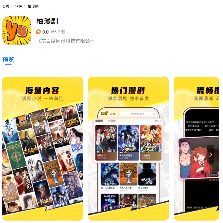 无独有偶,百度的另一漫剧APP,柚漫剧APP也在近期上线。
