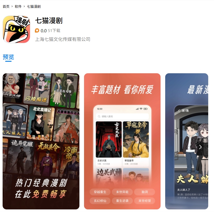 1月12日,百度旗下七猫正式推出独立漫剧应用“七猫漫剧”APP。打开APP体验后能发现,产品的核心定位很明确,就是免费看剧。