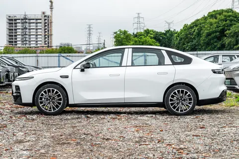 零跑B01(品技术)采用"天梭流体车身"设计语言,整体造型流畅且富有力量感,呈现出轿跑般的动感姿态。前脸采用封闭式设计,彰显其纯电动身份。分体式LED大灯极具辨识度,三点式日行灯犹如璀璨星辰,点亮瞬间便能吸引众人目光。车身侧面线条灵动,隐藏式门把手和18英寸星芒运动轮毂不仅提升了整车科技感,还有助于降低风阻系数。