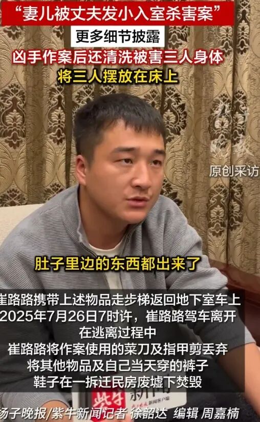 甚至将三人的遗体摆放在床上,伪装成安睡的场景。案发当天白天,当梁某朋的岳母等人到达现场时,崔路路还和另外两名朋友赶到,并“安慰”岳母说:“别哭了。”完全看不出刚刚杀害了三条生命的迹象。