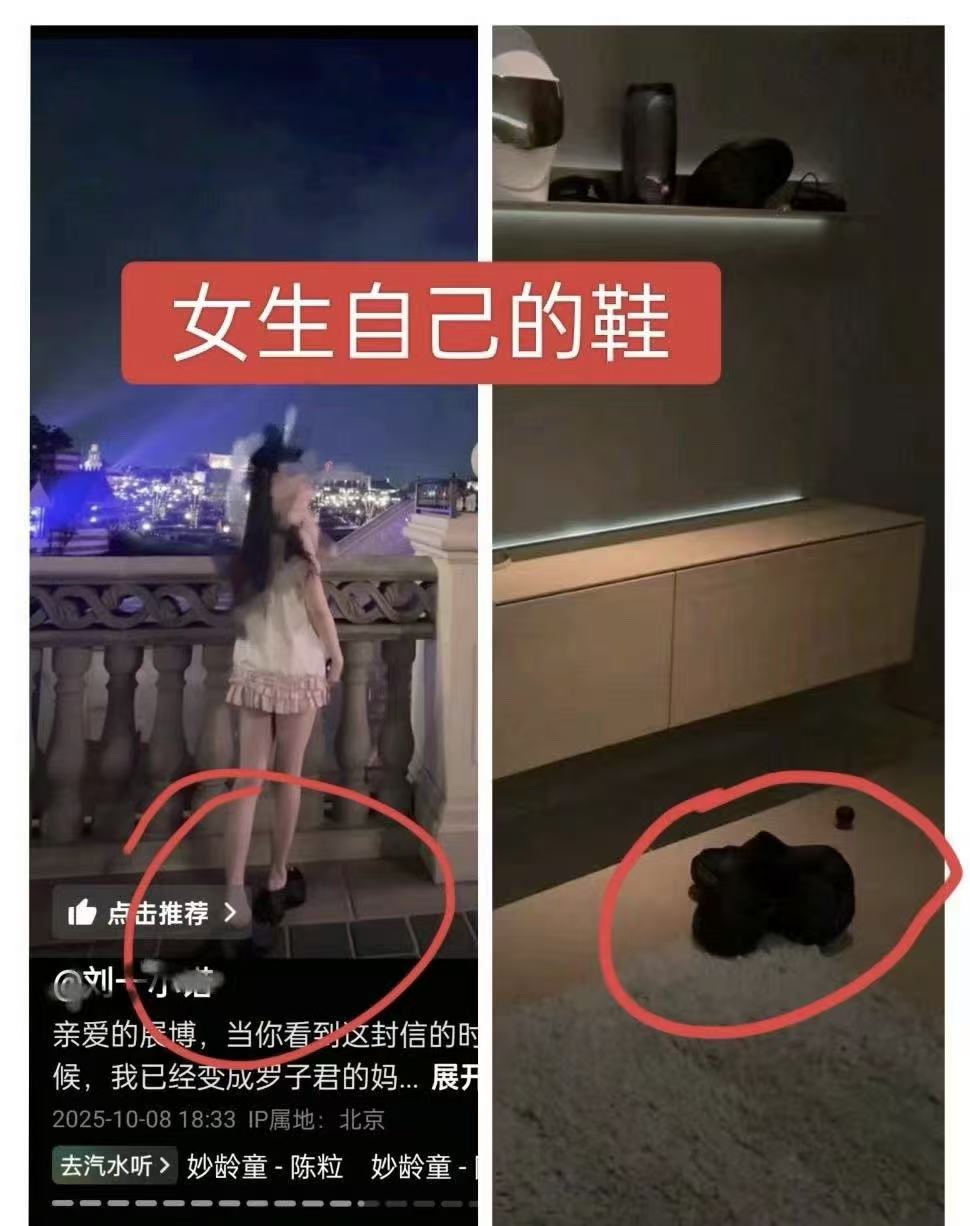 刘一诺还发了一张房间图片,在柜子上有一套男人的衣服,地上还有一双高跟洞洞鞋。墙壁上还有一顶头盔,IP地址跟檀健次小区一个地方。