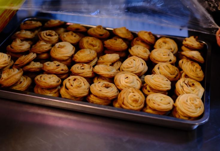 东坡饼的制作,极重“酥”与“脆”。需用上好的面粉、香油(或素油)和糖,经过反复的揉捏、醒发、擀制与折叠,形成极薄而繁复的千层酥皮。整个过程精细繁复,如同完成一幅工笔画。最终成型的饼坯,薄如蝉翼,层层分明,入热油中炸制,瞬间绽放如一朵蓬松的、金黄色的花朵。