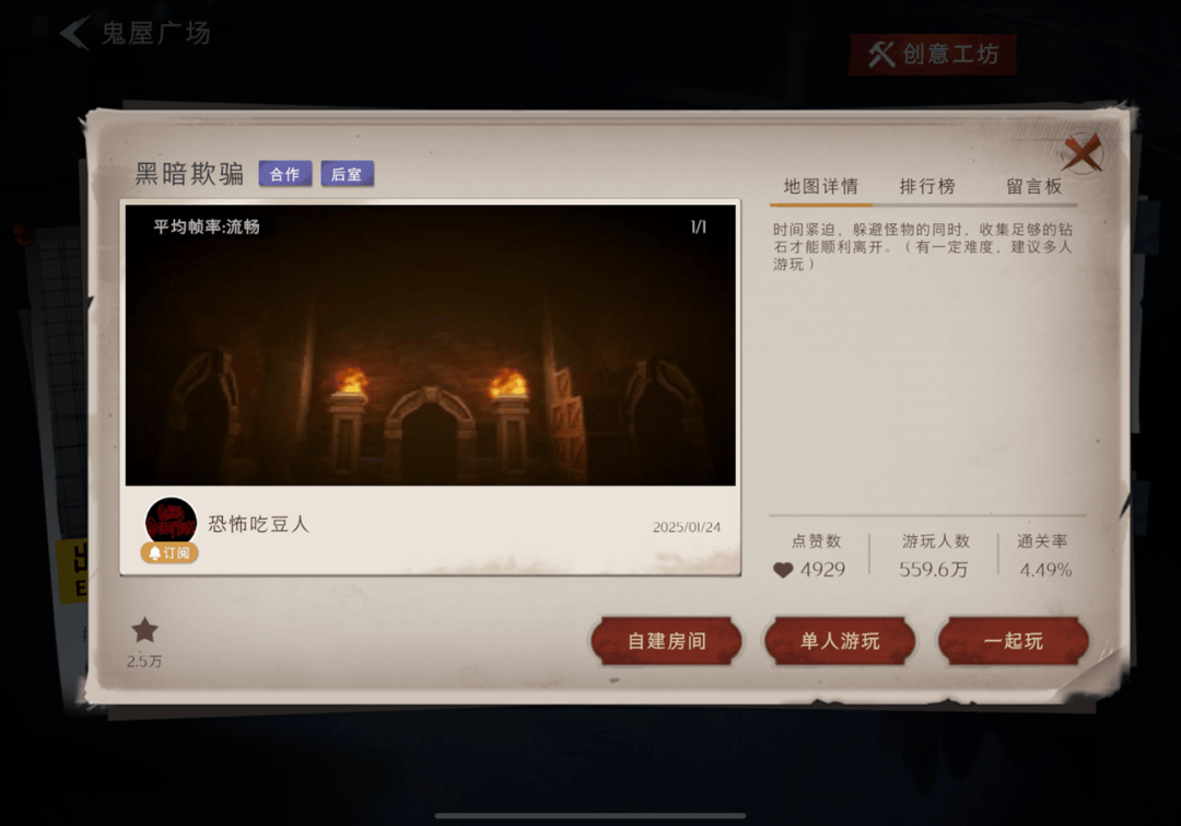 尤其是“鬼屋广场”上线后,涌现出不少游玩次数上百万的自制地图,为玩家们提供主玩法之外的“刺激感”,要是乐意自己做图,编辑器还自带诸如鬼屋、走廊、跑酷等多种模板,满足大家的创作欲。
