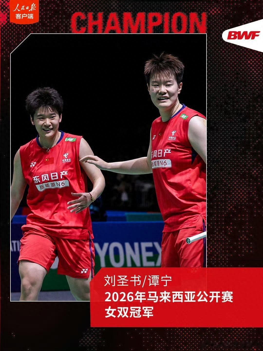 1月11日,2026年马来西亚公开赛在吉隆坡展开各单项决赛争夺。在刚刚结束的女双决赛中,中国队组合刘圣书/谭宁以总比分2:0战胜韩国队组合白荷娜/李绍希,收获本赛季首冠。