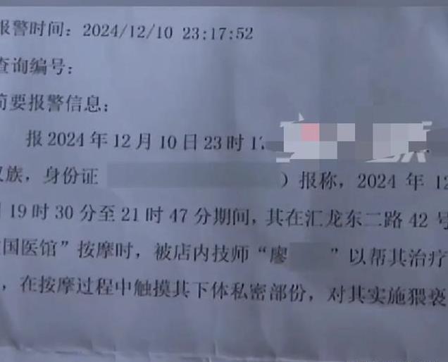 在信息中,回执是这样写的,在按摩过程中,按摩师触摸其下体隐私部分,对其实施猥亵。