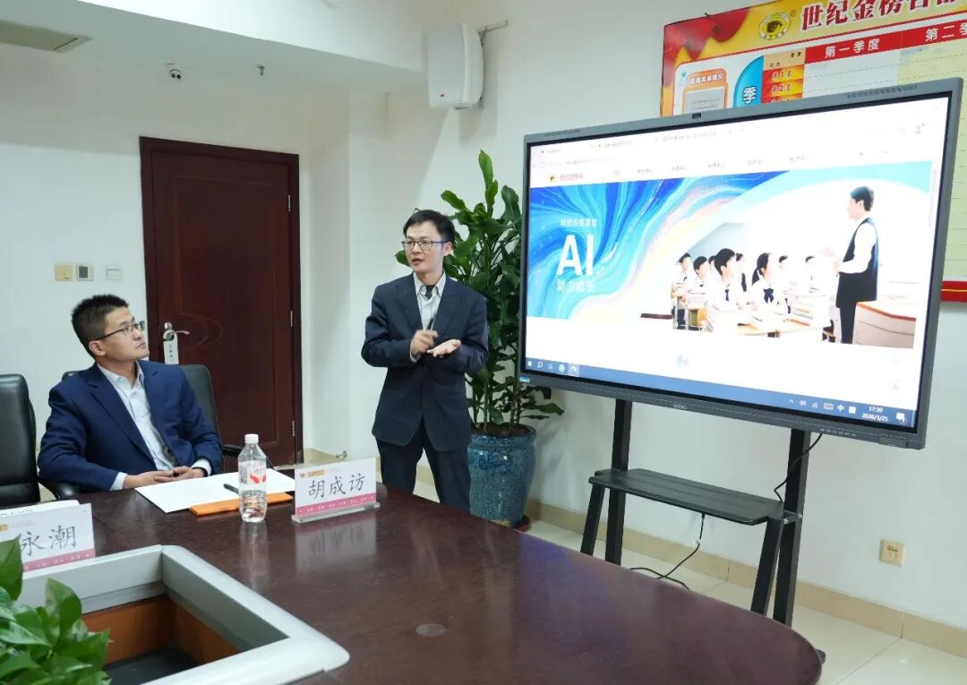 AI项目部袁永潮经理详细汇报了世纪金榜AI系统的核心功能及应用场景,展现了AI赋能教育的实践成果。
