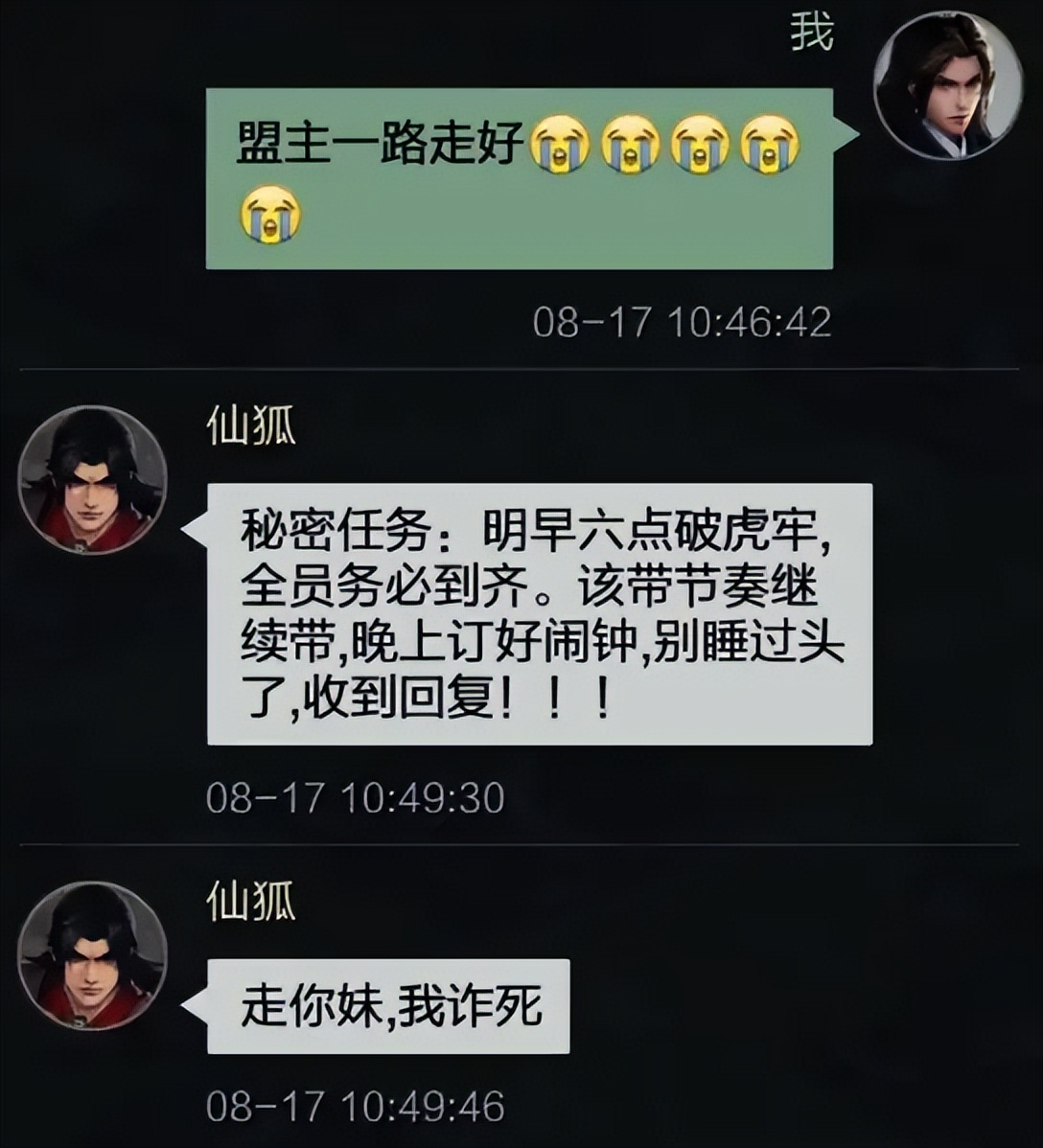 你别说,你还真别说,还真就有人这么干过!就在《率土之滨》4044区。一位叫"仙狐"的盟主,为了攻下虎牢关,先是散播自己心梗去世的消息,全区停战三天为他默哀。