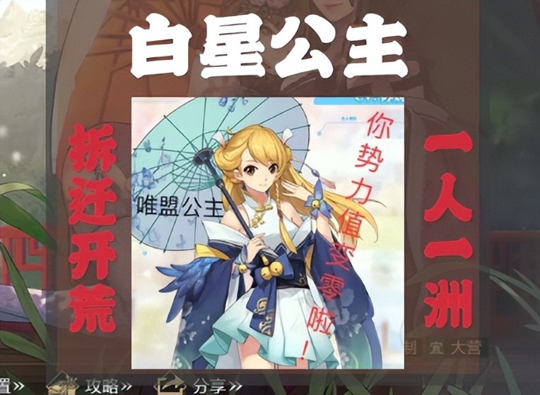 来自【唯盟】玩家白星公主以传奇的“拆迁”能力闻名,为了报答同盟同伴的照顾之前,选择专注研究拆迁队。在新赛季中,她完成“一人拆一州”的壮举,从凉州东一路拆到凉州西,清除敌方大量势力。更在邀请赛上创下单日3192的惊人拆迁值,领先全区,被誉为“拆迁女武神”。