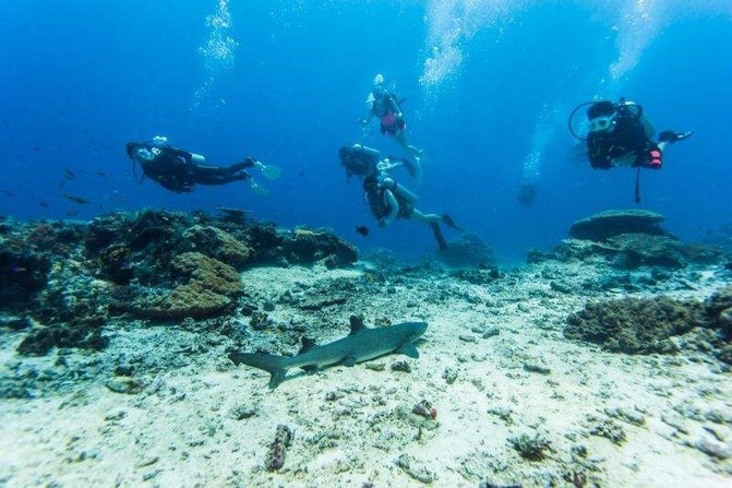 5米的浅滩之后就是垂直落下超过600米深的湛蓝深海,被称为世界五大峭壁潜水之首,潜伏时看到的各种小鱼以及珊瑚。可以说是非常非常的漂亮了。
