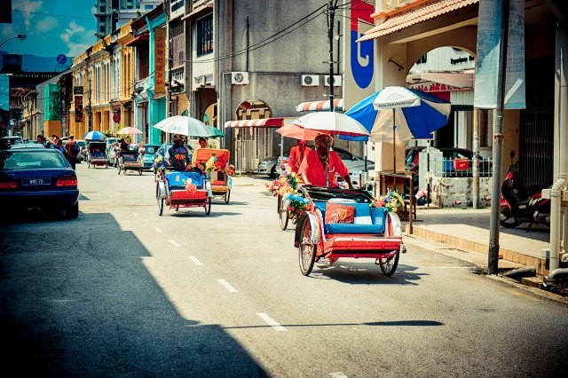 在槟城的市中心和一些古迹范围区,有一种“特殊的交通工具”人力三轮车。与国内很多地方不同的是,其设计是乘客坐在前面,车夫在乘客的后面蹬车。坐在三轮车上,街景就像缓缓转动的胶卷播放出来的旧电影画面一般,一幅一幅地往后慢慢退去。不过,三轮车没有收费划一,坐车前你要先给车夫议价再上车。