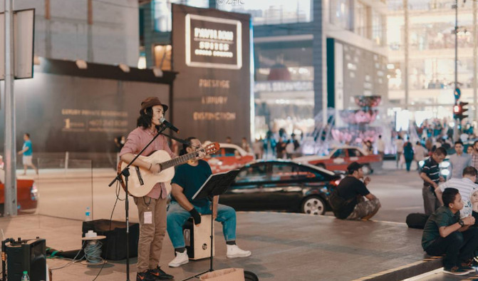 我们在街上遇到的艺人,吉他和歌都唱的特别好,小哥哥也很帅。