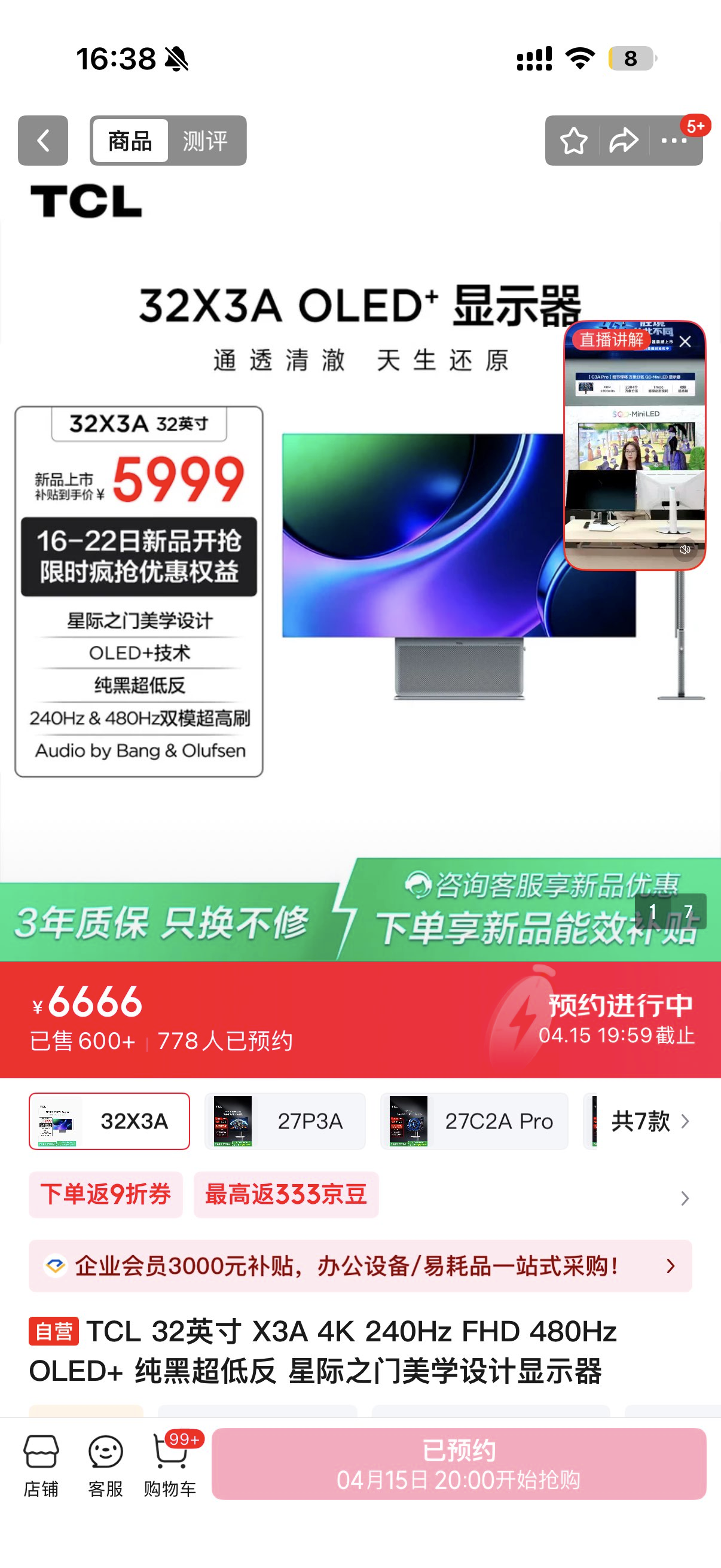 抢到就是赚!TCL X3A显示器刚上市就售罄谁能想到,TCL 竟直接把高端显示器卷到了新高度!全能至臻 X3A 刚一上市就火速卖断货,凭跨代 OLED +技术一举刷新了高端显示器的行业天花板。 千万别觉得这份热销是偶然,TCL 在显示领域深耕数十年,手握 TCL 华星顶级面板供应链 —— 全球每三台电竞显示器中,就有一台搭载华星面板;再加上千亿级的研发投入,这般用心打磨、舍得下成本,产品大卖本就是情理之中。 说到X3A上,其核心竞争力正是这款跨代OLED+技术带来的极致画质。基于像素点自发光的特性,它还能轻松实现纯粹无杂的完美黑场,99%双色域覆盖率(DCI-P3/sRGB)更让色彩还原精准到骨子里。同时它还精准攻克了传统 OLED 的诸多痛点:搭载圆偏反技术实现 2% 超低反射率,强光下屏幕绝不发紫、不泛灰;搭配 Matrix-Pure 超清矩阵像素,更是从根源上解决了文字彩边问题,办公、追剧等日常场景都能完美适配。 不仅画质能打,这款显示器更是游戏党的必冲款。疾速帧技术将画面延迟直接降低 50%,搭配4K 240Hz/FHD 480Hz双模高刷,赛场之上快人一帧,轻松锁定胜局;更有B&O深度定制的音响,听声辨位精准度超高,游戏沉浸感直接拉到极致。 颜值与体验这块,TCL X3A 也做到了双在线。它有着 “热巴式” 的惊艳外观,6.4mm 超薄机身侧看成线,金属质感拉满;星际之门反投式呼吸灯设计,夜晚使用时观赏性直接拉满。同时它还拥有UL权威护眼认证,无频闪调光搭配硬件低蓝光技术,长时间使用也不易累眼,贴心兼顾了使用体验与眼部健康。 更让人惊喜的是,集齐这么多顶级配置的 TCL X3A,入手价仅 5000+,这样的质价比,也难怪一上市就卖断货!而且我看TCL电商页4月还会再上新一波货源,不多说了,我也要赶紧去蹲守了!#TCL显示器出手即顶配##TCL32X3A##TCL进军显示器#