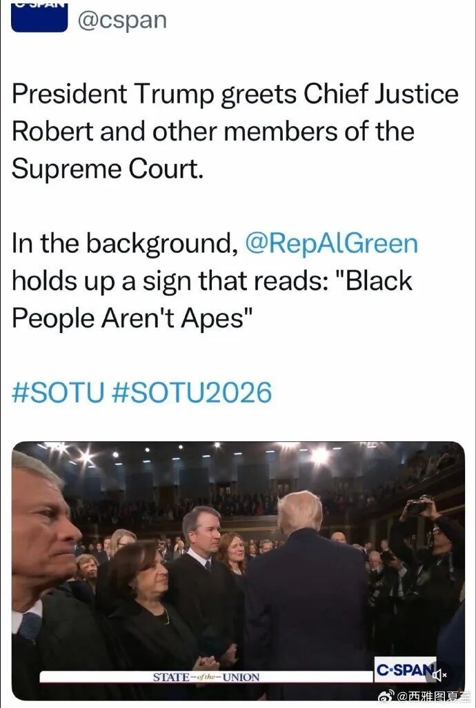 因为投票取消关税,被Trump指责最多的Gorsuch,没有出现。但Trump还是和首席大法官、以及另外三名,礼节性地握手。