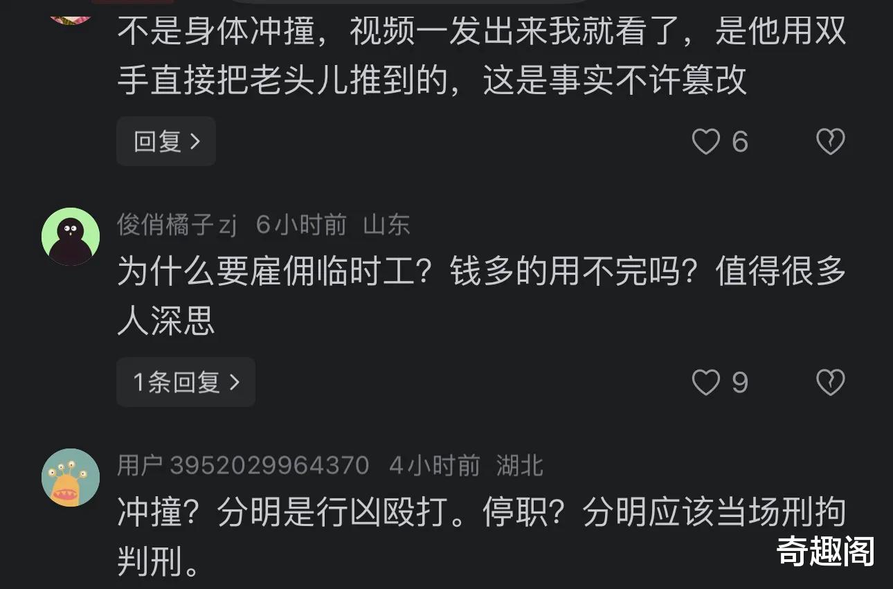 事发后有多位目击者发声,有的人表示老人是社区老面孔,待人很温和;还有人说是因为摆摊儿发生了口角。不过后续有消息称,老人不是摆摊儿的商贩,他已经86岁了。但是郑某亮正在驱赶占道经营的商贩,老人刚还路过,他有点看不惯,于是就“路见不平一声吼”,跟郑某亮发生了争吵。