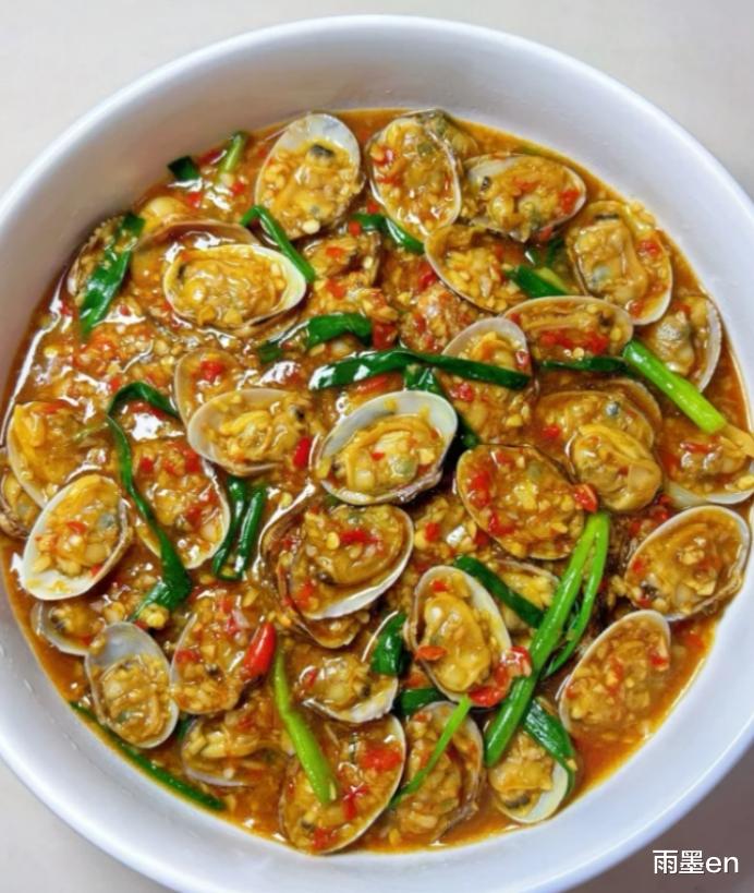 花甲吐净沙后焯熟,壳薄肉嫩、汁水丰盈,在热油中与满满蒜蓉、小米辣、姜末一起爆香,淋上一点生抽和蚝油,瞬间香气炸裂。刚出锅端上桌,孩子扒拉一个就喊“这个比烧烤摊还香”,老公连汤都想拌进第二碗米饭——鲜、香、辣、蒜味十足,一口下去,满嘴都是大海的清甜和家常的烟火气!