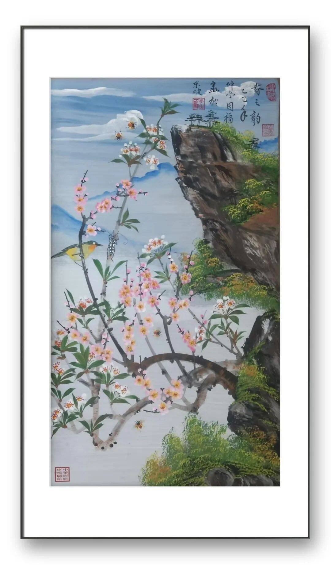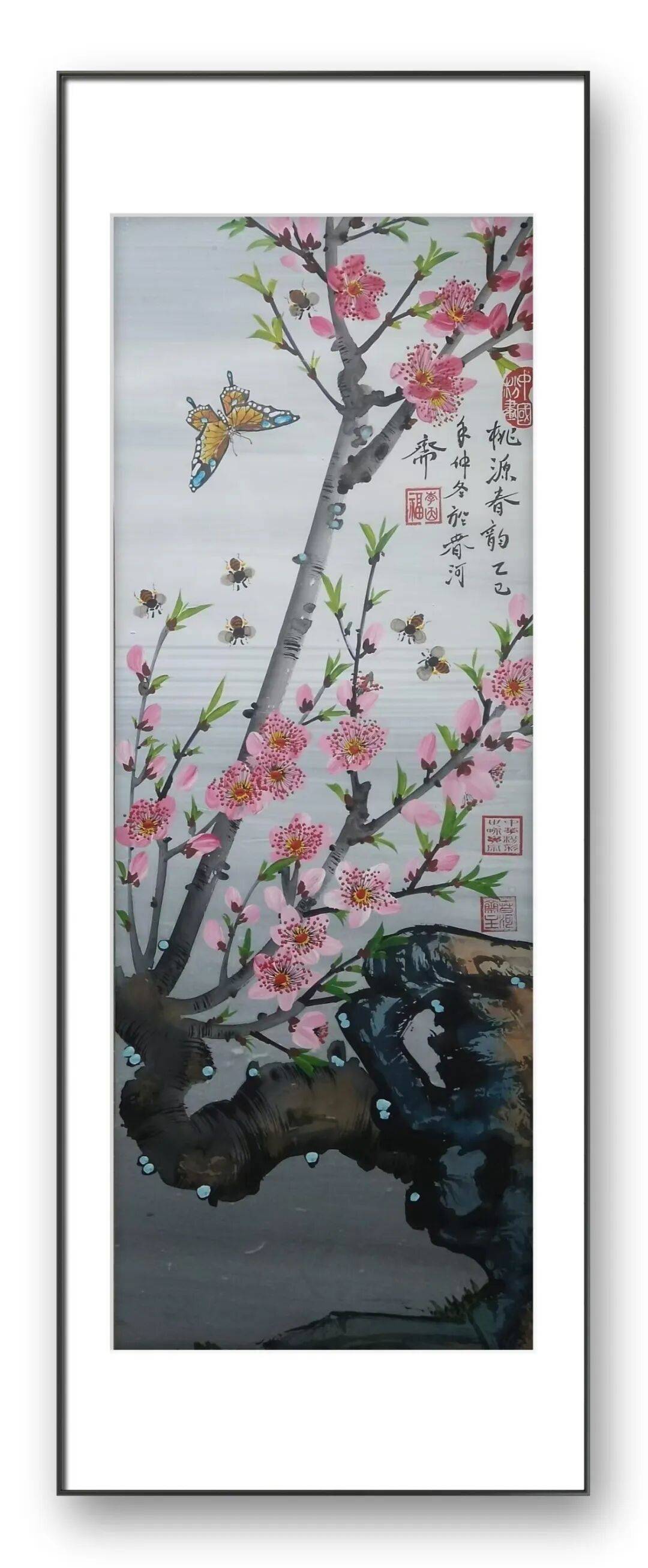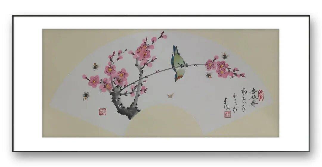 先生的创作始终秉持“心师造化,融情于形”的理念,笔下的每一株花、每一只鸟都不是简单的物象复刻,而是有灵性、有情感的生命个体。他善于捕捉自然中的瞬息之美,将春日繁花的绚烂、夏日荷花的清雅、秋日菊韵的淡然、冬日寒梅的傲骨,都融入笔墨之中。无论是欢快跳跃的青蛙、优雅翩跹的蝴蝶,还是悠然游弋的鱼儿、静立枝头的雀鸟,在他的笔下都拥有了鲜活的内在世界,仿佛能让人听到画中细微的生命律动,感受到大自然的生机与温情。这种对生命的深刻理解与细腻表达,让他的作品超越了视觉艺术的范畴,成为情感与灵魂的载体。