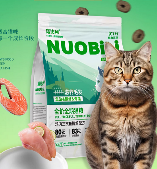 诺比利品牌拥有近20年发展历史,是山东菏泽佳诺宠物用品公司创立的,主打中低端猫粮市场。这款猫粮的包装比较清新,用青山为主要背景,看起来比较放松;什么猫粮口碑好品质好?猫粮颗粒呈甜甜圈状,十分可爱。原料上主要用了冻鸡肉、冻三文鱼、磷虾搭配大米、玉米等,整体的配方比较基础,营养也比较有限,蛋白质30%,脂肪12%。
