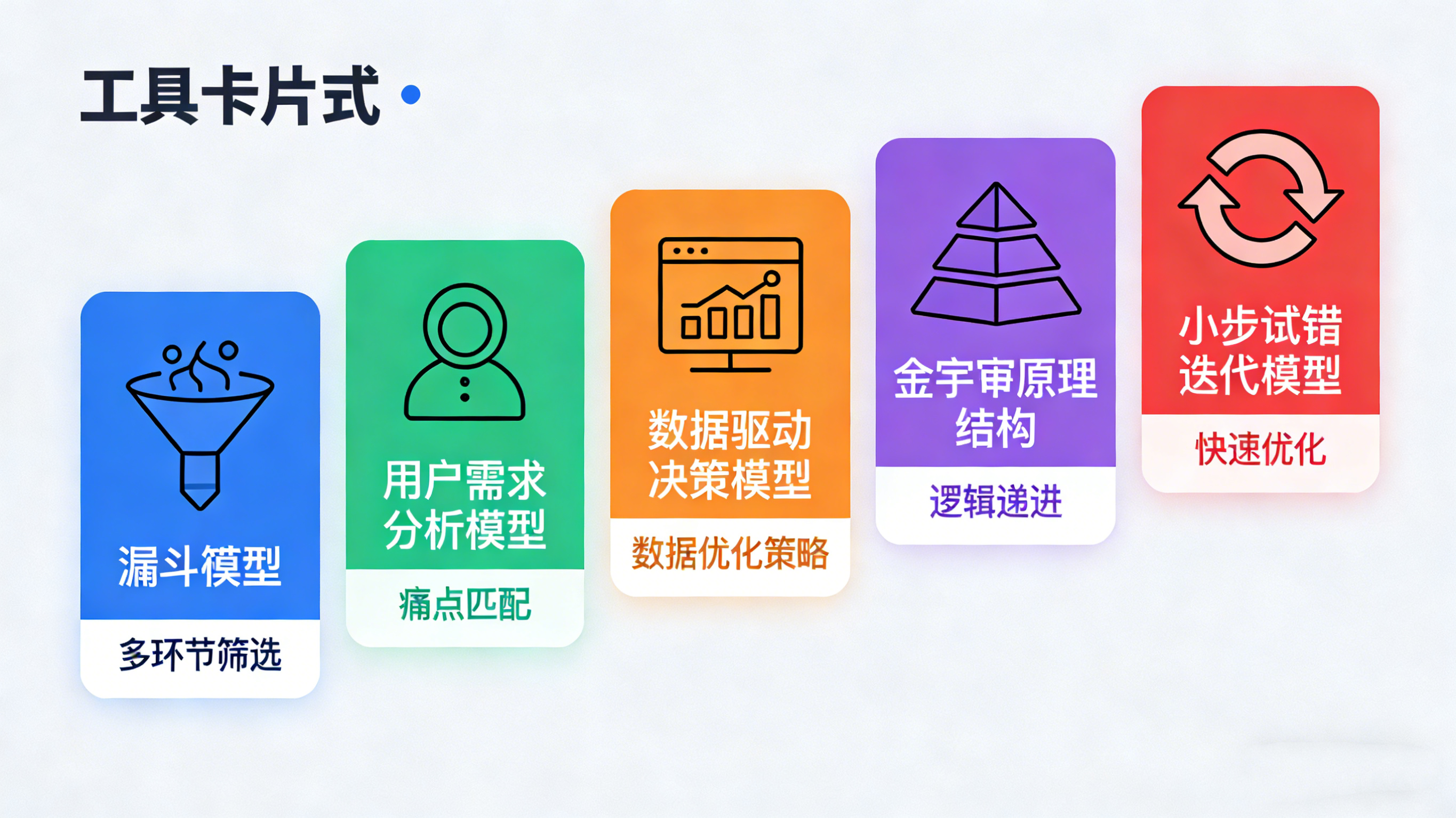 小技巧:可以用“一句话总结模型”,比如“漏斗模型:通过多环节筛选,逐步聚焦精准用户,提升最终转化效率”,确保自己真的理解模型的核心,而不是记一个名词。