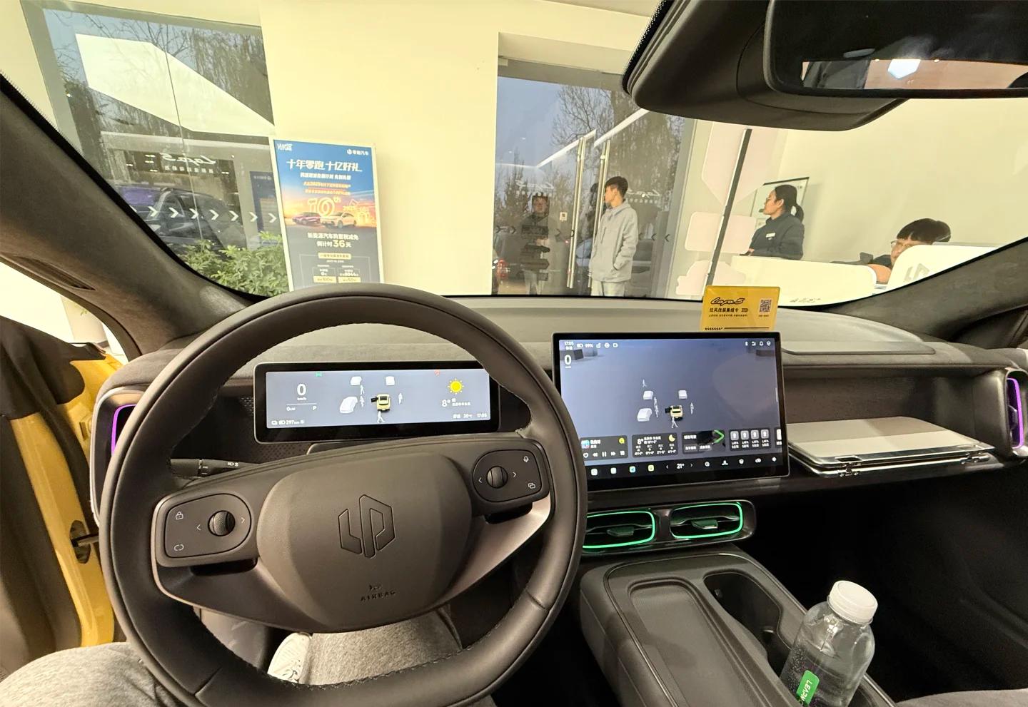 而当我坐进车内,直观的感受到该车的内饰用料还是挺扎实,咱讲车主打一个真实,要是谁告诉你零跑Lafa5车内豪华感能比肩20多万的车型,那你可以直接拉黑处理了,敢这样说多少显得不切实际,毕竟价格摆着这里。