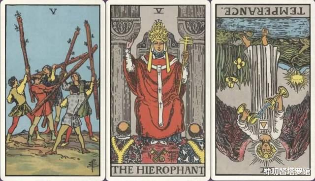 牌:权杖五+ 教皇+ 节制-