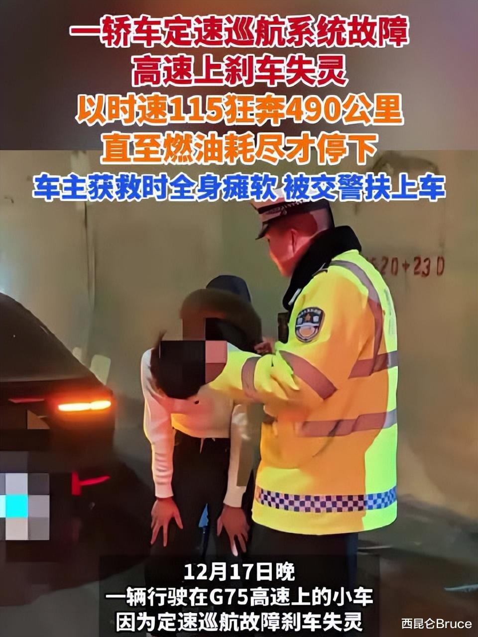 车辆启动定速巡航系统,将速度设定在115公里/小时。然而不久后,马某惊恐地发现,车辆速度无法降低,刹车也完全失去了作用。